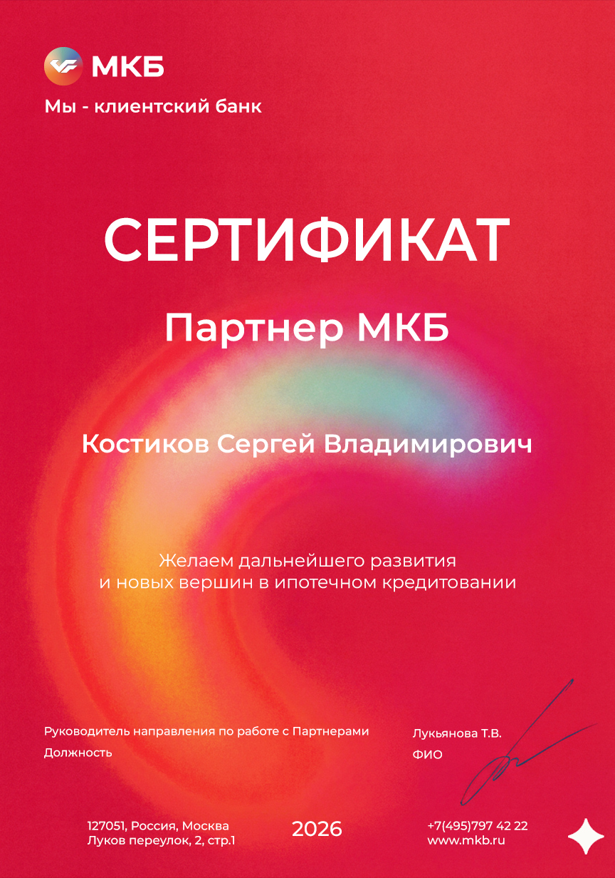 Помогаю клиентам быстро и уверенно получать одобрение ипотеки на самых выгодных условиях: минимальная ставка, максимальная сумма, комфортный платёж.